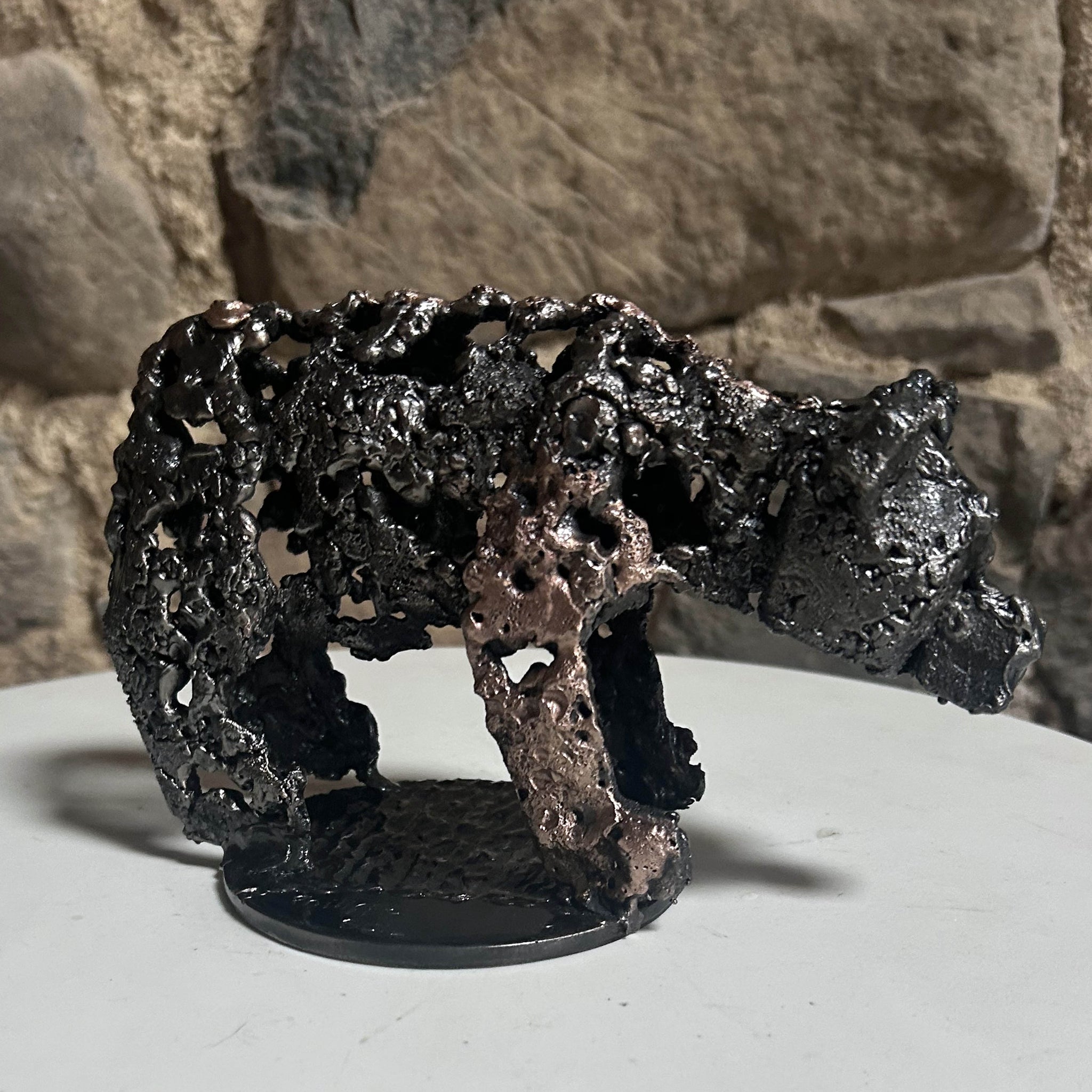 Ours de veille – Sculpture ours en dentelle de métal acier et bronze