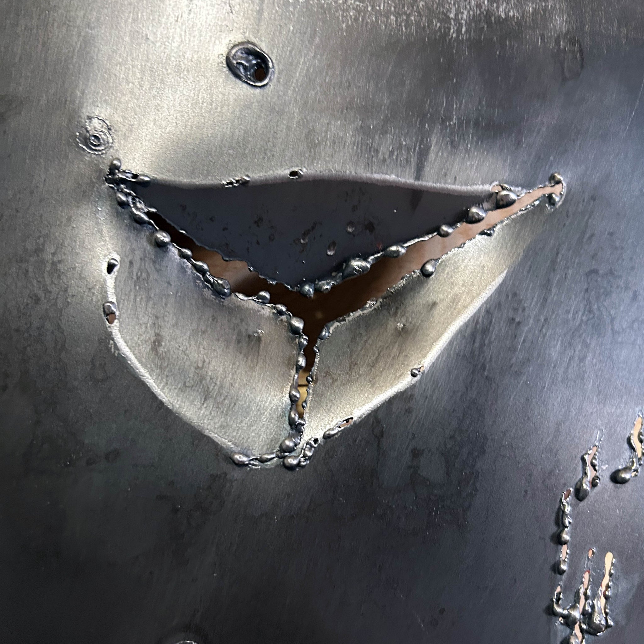 手工加工和切割的金属板上制作的壁挂雕塑。