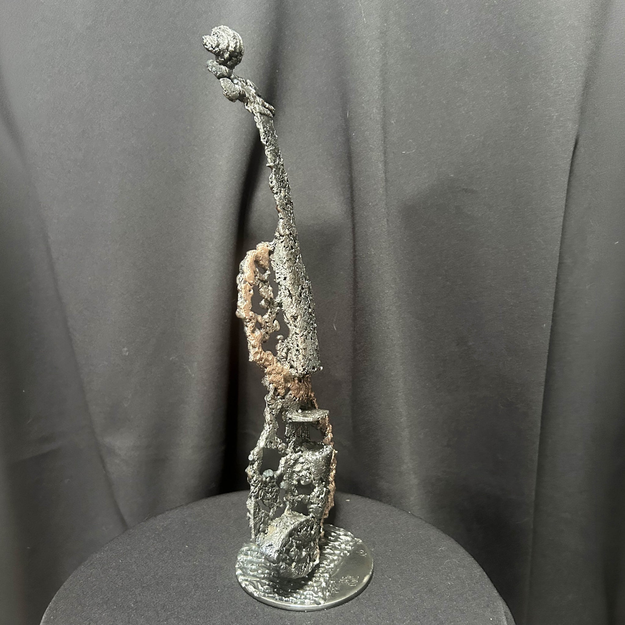 这件雕塑表现了一把金属蕾丝小提琴,由青铜和钢制成。