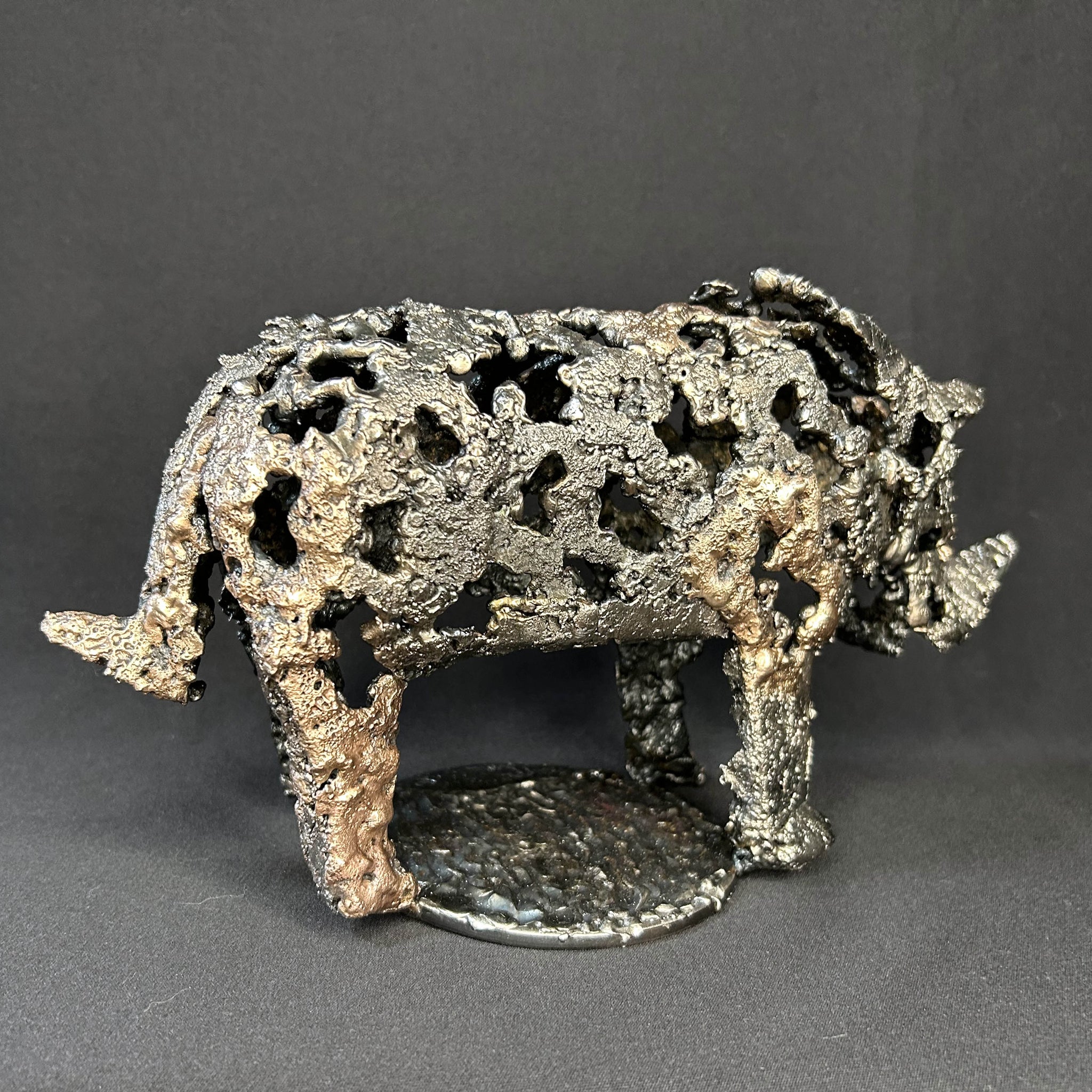 犀牛 13-26 - 钢铁与青铜金属蕾丝雕塑